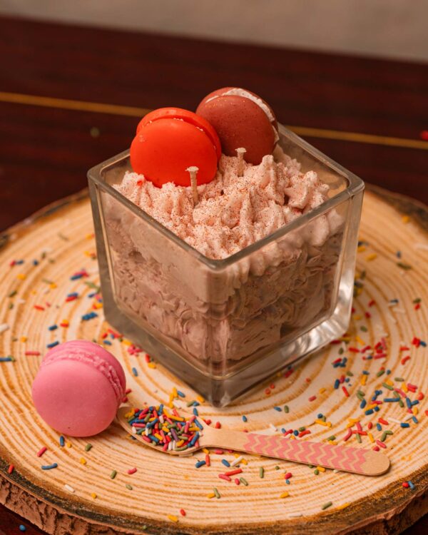 Χειροποίητα κεριά με σχέδια που θυμίζουν γλυκά επιδόρπια, για να προσθέσουν χαρούμενη ατμόσφαιρα στον χώρο σας.